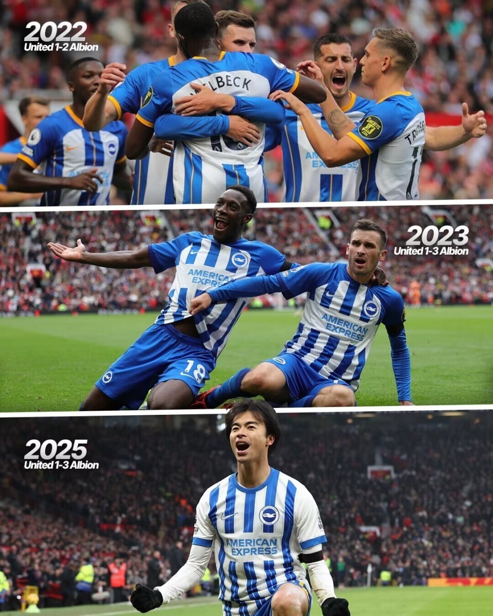布莱顿客场对阵曼联,已经豪取3连胜,上一次在老特拉福德球场取得4连胜的客队,还是1972年的曼城,53年之前。